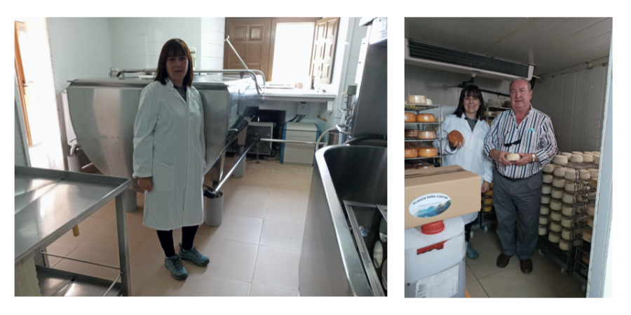A la puerta de la quesería y en plena faena de elaboración de queso