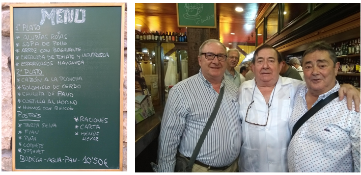 Al final, acabo compartiendo mesa y mantel con Evaristo en Casa Tomás; el menú del día no puede ser mejor y nos sumergimos en unas alubias rojas con chorizo que estaban exquisitas; de segundo, él pidió un bacalao a la riojana y yo una chuleta de Tudanca. El almuerzo se remató con un queso de su quesería y toda la comida se regó con un vino de Cantabria, pues hay que ayudarse unos a otros. Tuve la curiosidad de contar los comensales y eran 27, en un martes normal; Evaristo me dijo que los sábados y domingos aquello era una romería y estaban dando de comer hasta las seis de la tarde. ¡Yo salí más que satisfecho del lugar! Y di las gracias a Cristina, a quien alabé la comida y la animé a seguir por la senda de la amabilidad y calidad.