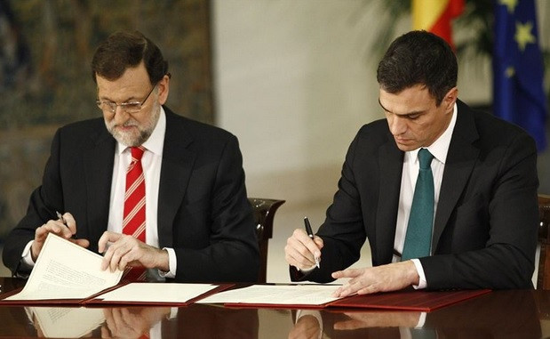 Y aún más perplejidad y confusión causa que mientras PedroSánchez afirme en el Círculo de Economía de Barcelona que “ve necesario llegar a otros acuerdos de fondo con Mariano Rajoy, como pudiera ser el referente al sistema educativo”, su portavoz parlamentario, Antonio Hernando, dijera que “no hay ninguna otra posibilidad de pacto con el PP en otros temas, porque nuestras diferencias son abismales”. El propio expresidentes, Felipe González ha tenido que salir al paso y manifestar su defensa del pacto como un “ejercicio de responsabilidad”. Sepan que este “pacto” también ha estado muñido por González, Zapatero y Rubalcaba.