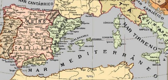 Y no me puedo sustraer a plasmar un viejo mapa medieval con el Reyno de Aragón, el cual incluye los territorios españoles de una gran parte de la península itálica, con los territorios de Nápoles y Sicilia; ¡Y podríamos hablar de Atenas y Neopatria!....