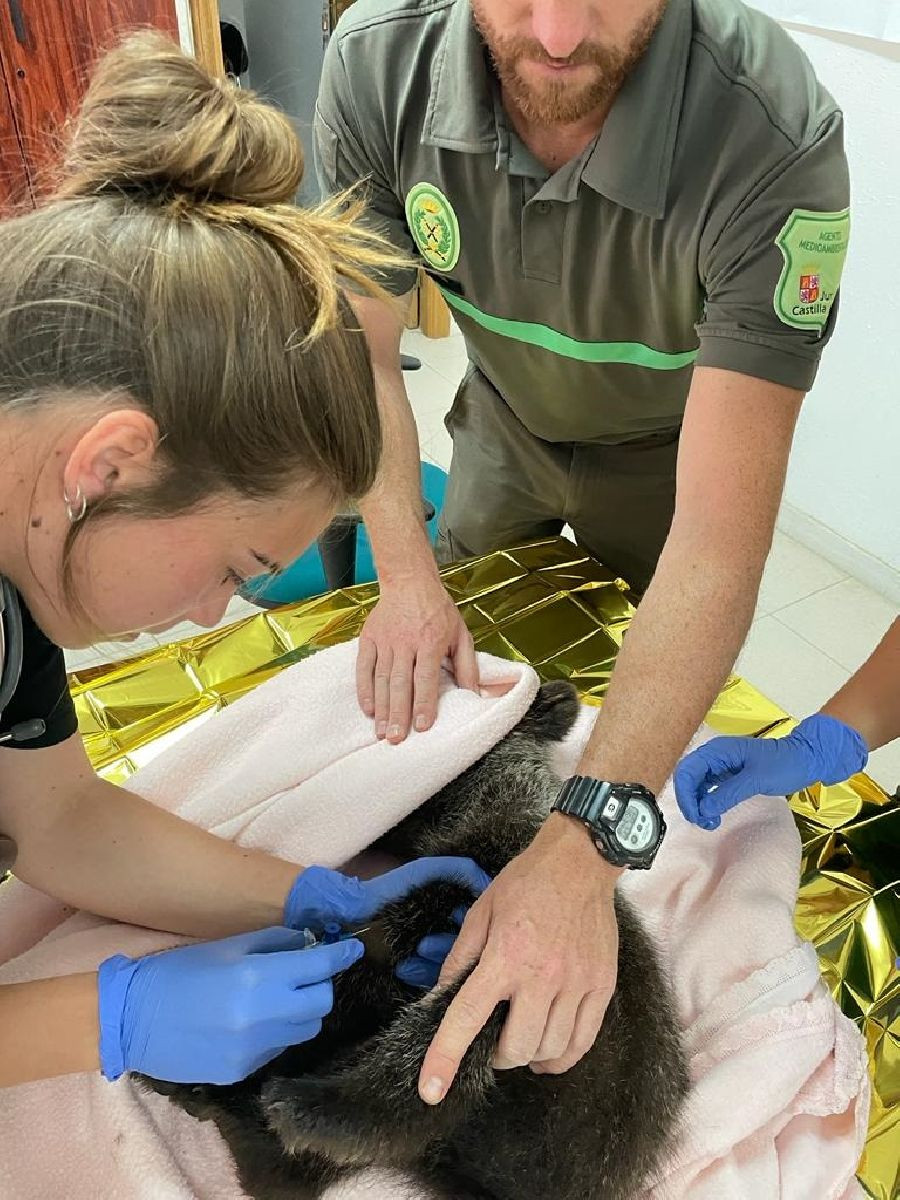 Un vecino del pueblo se había percatado de la presencia del animal y avisó a los agentes medioambientales, quienes le recogieron y los trasladaron a Bembibre (León), donde dos veterinarios de la red de centros de recuperación de animales silvestres de la Junta procedieron a su primera valoración, y posteriormente fue traslado al Centro de Recuperación de Animales Silvestres de Valladolid, lugar en el que ha estado antes de viajar a Cantabria, donde se recupera actualmente.