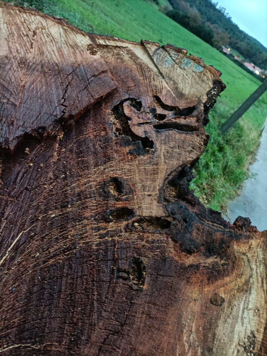 Añade que "los propietarios de la parcela, en la que se supone que se ubica el roble centenario, estaban talando el árbol, sin autorización alguna, y excediendo la poda requerida, justificando que se estaba talado porque el tronco se encontraba muy deteriorado por dentro".