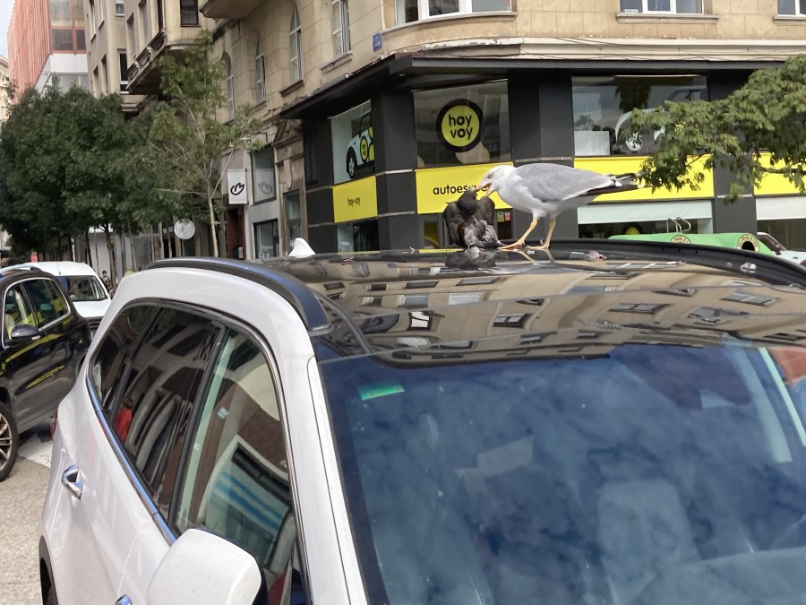Pero como suele ocurrir en esta nueva España salieron los lumbreras y decidieron, no sabemos el motivo, prohibir que arrojasen restos de pescado los pesqueros cuando regresaban al puerto por lo que las gaviotas se quedaron sin su sustento. Ahora se las puede ver por algún vertedero incontrolado del interior, incluso llegan hasta Reinosa. Buscan comida desesperadas y han decidido que la comida más fácil de obtener son las palomas sin hacer distinción entre la paloma bravía,(Columba livia) la torcaz (Columba palumbus) y los gorriones (Passer domesticus) que hemos visto devorar. También este verano en las playas era llamativo ver cómo se abalanzaban sobre cualquier resto de comida. Tal vez por este motivo el Ayuntamiento ha decidido que la madre naturaleza acometa ese control de especies en nuestra ciudad.
