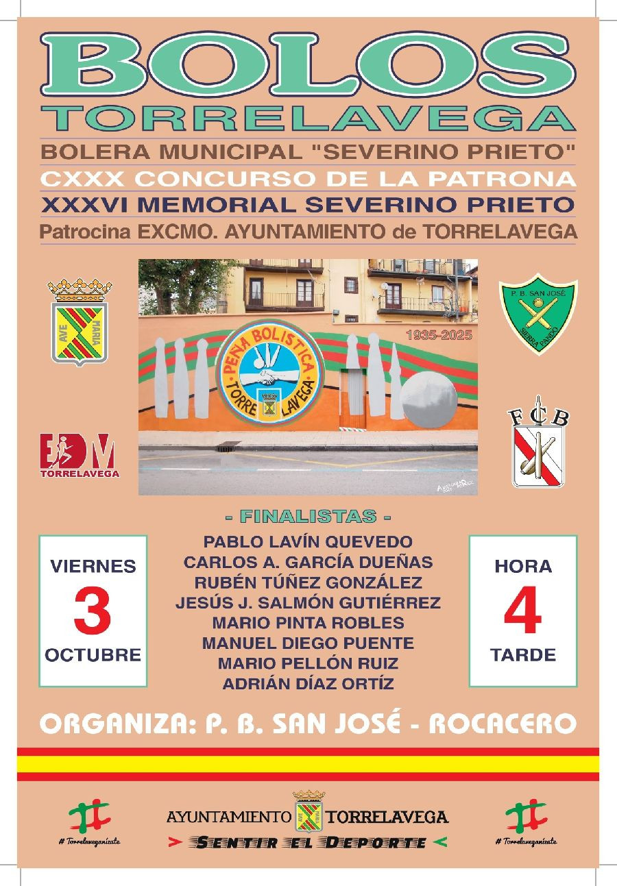 La Bolera Municipal `Severino Prieto` acogerá este viernes 3, a partir de las 16.00 horas, las finales del CXXX Concurso de La Patrona y XXXVI Memorial Severino Prieto, organizado por la Peña Bolística San José-Rocacero, con la colaboración del Ayuntamiento de Torrelavega.