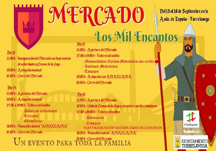 Torrelavega acogerá del 13 al 16 de septiembre el Mercado `Los Mil Encantos`, una nueva propuesta que se celebrará en la Avenida de España e incluirá diversas actividades gratuitas, como talleres, pasacalles, actuaciones musicales y un encuentro con Doña Leonor de la Vega, una de las personas más importantes y decisivas en la fundación de la ciudad.