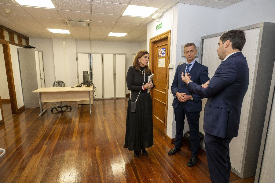 La consejera, Paula Fernández, junto con el presidente del Tribunal Superior de Justicia de Cantabria (TSJC), José Luis López del Moral, han visitado este viernes las dependencias judiciales del Edificio Europa, donde estará ubicado el nuevo juzgado, que entrará en funcionamiento el próximo 31 de diciembre.